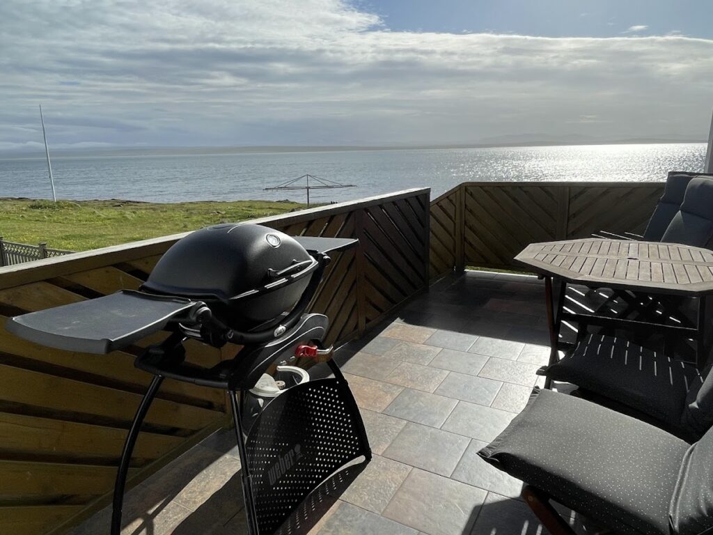 Eldhúsið er fullbúið áhöldum til eldamennsku og á veröndinni er grill.