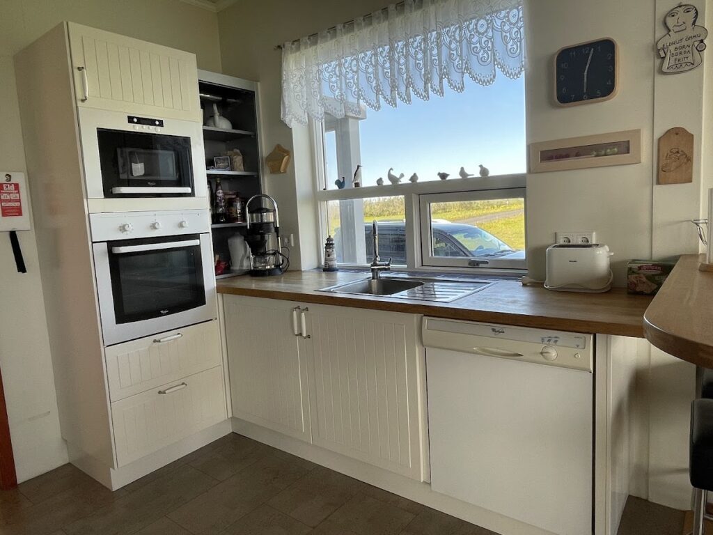 During the winter, breakfast is self service in the kitchen where we offer bread, toppings, fruit, jam, skyr, milk, coffee and cereals. Let us know if you have any special wishes.